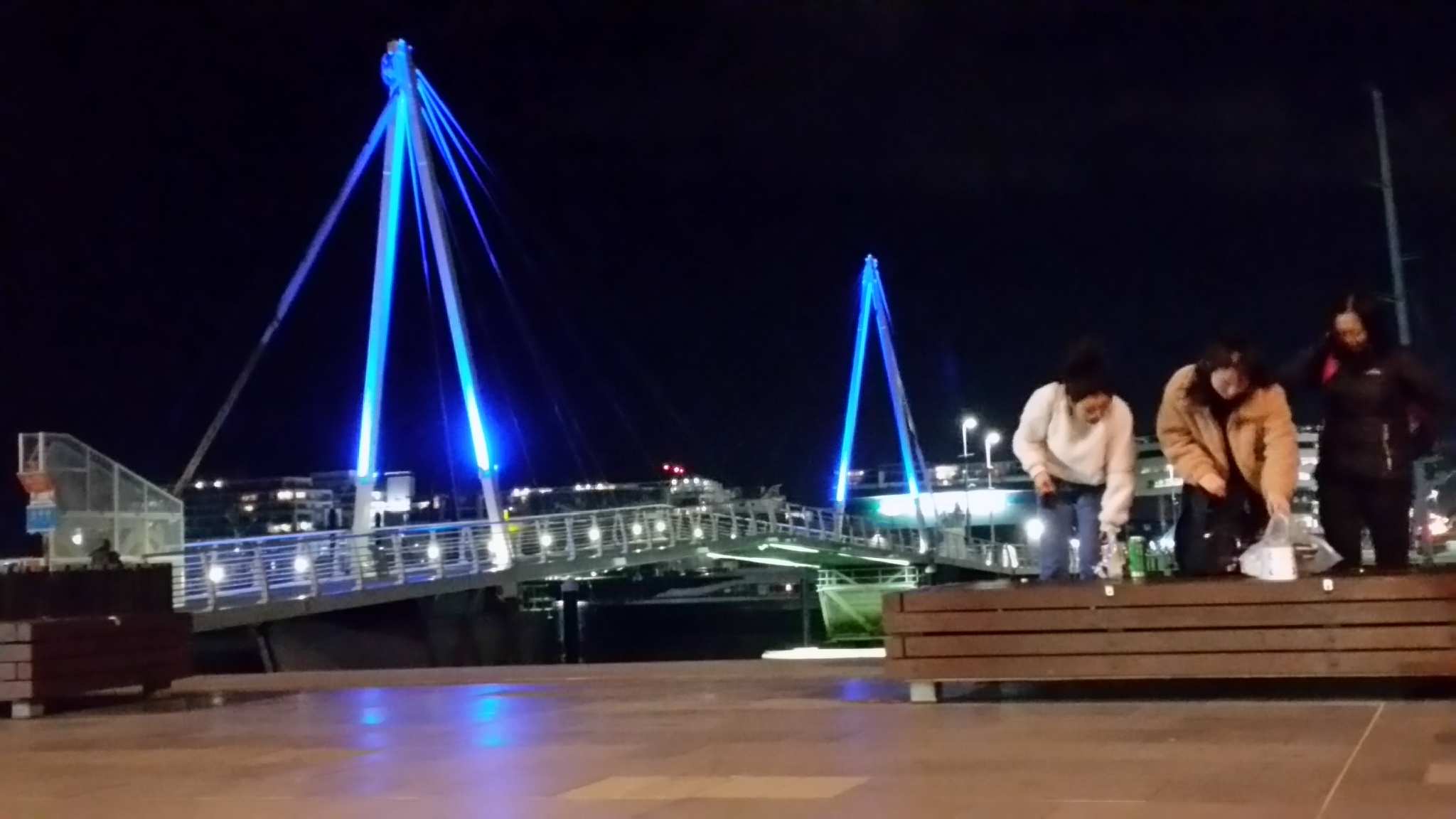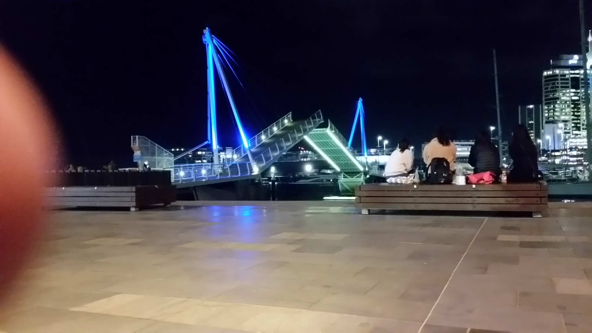 This is a foot/cycle bridge across the Viaduct in Wynyard Quarter. It can be raised to allow tall boats through. It looks amazing at night and blends in well with the lights of Wynyard Quarter. There are good eateries around the area and a great place to explore and stroll days or evenings.