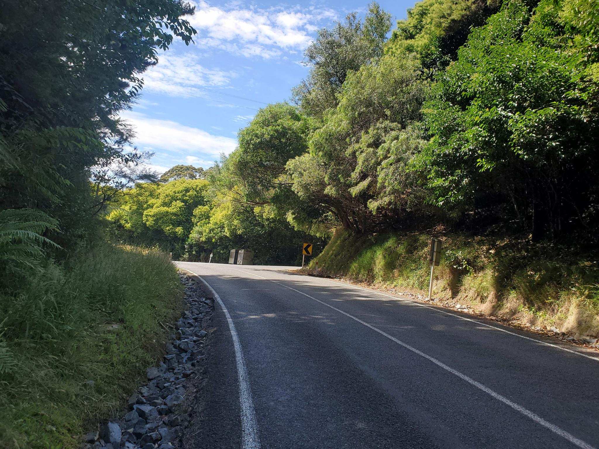 A good route between Clevedon and Hunua. A nice and not too steep climb though a sheltered avenue of trees.